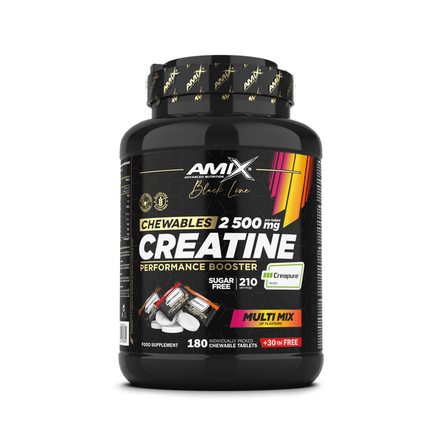 Les Creatine Chewables Creapure® de la gamme AMIX Black Line, c’est la créatine version ultra pratique : des comprimés à mâcher que tu peux prendre n’importe où, sans shaker, sans eau obligatoire, et sans te battre avec une poudre qui colle. Idéal si tu veux une routine créatine régulière, surtout les jours où tu bouges beaucoup ou quand tu veux un format “grab & go”.