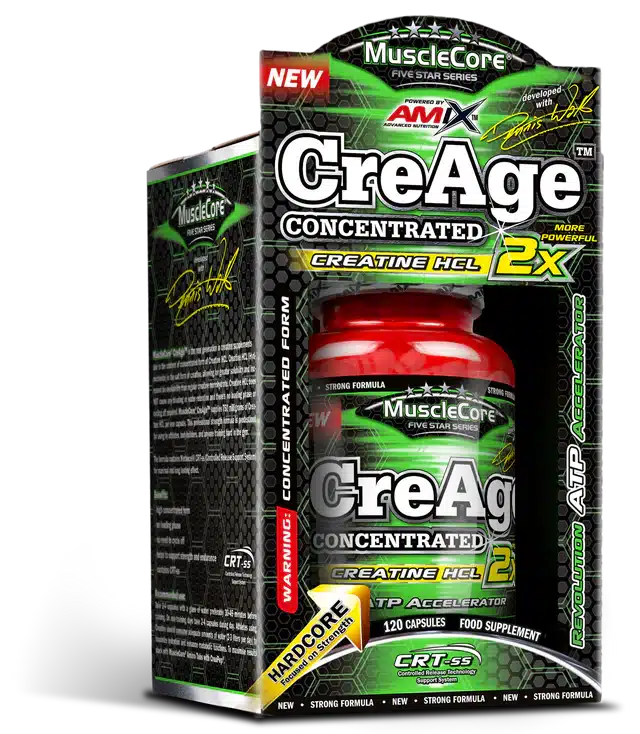 CreAge Concentrated apporte 1500 mg de créatine HCl par dose de 2 capsules. La formule contient aussi un système de support à libération contrôlée CRT-ss avec Methocel®, mis en avant par la marque. Ce format a été pensé pour les sportifs qui veulent intégrer une créatine HCl AMIX dans une routine orientée force, explosivité et répétition d’efforts intenses. Avec 120 capsules par flacon, tu disposes de 60 doses à 2 capsules.
