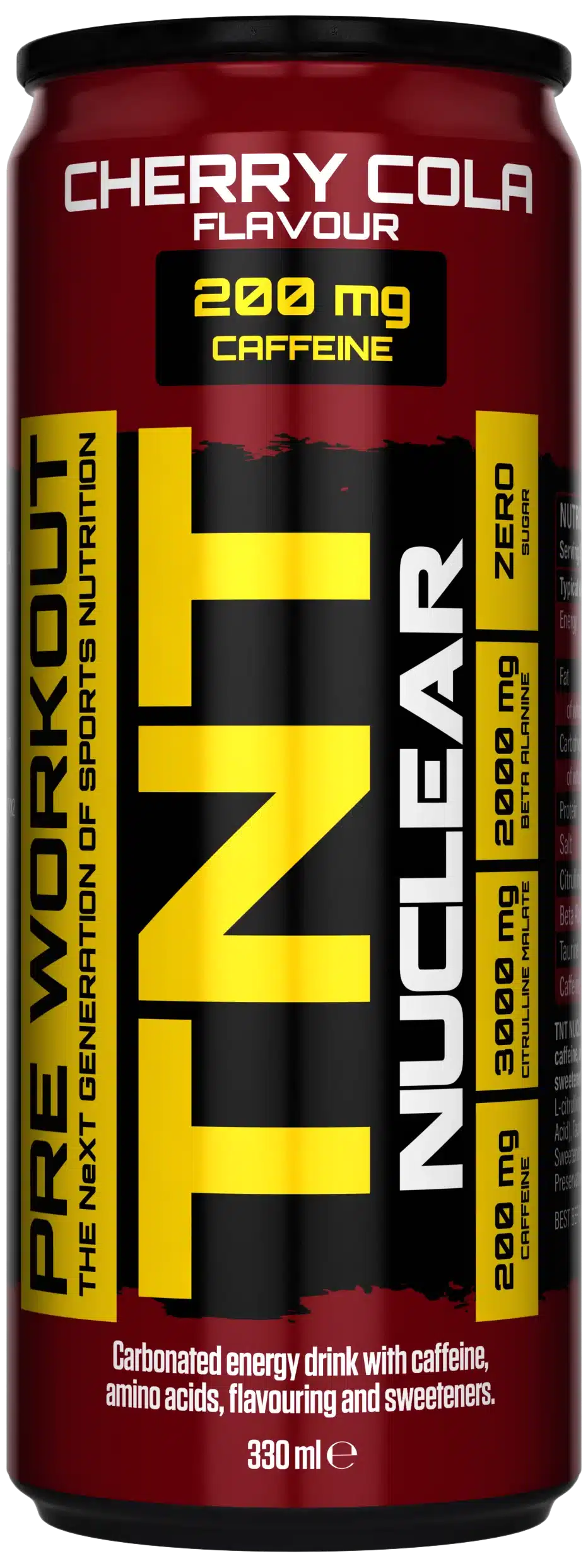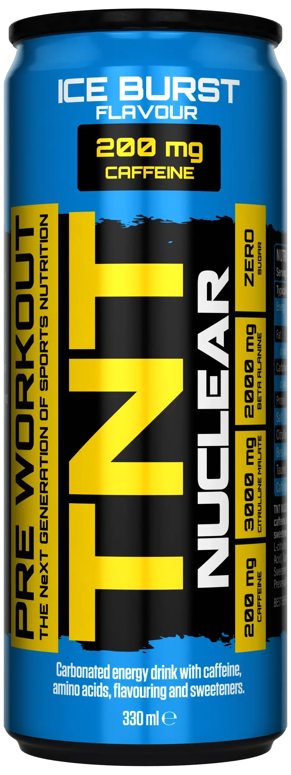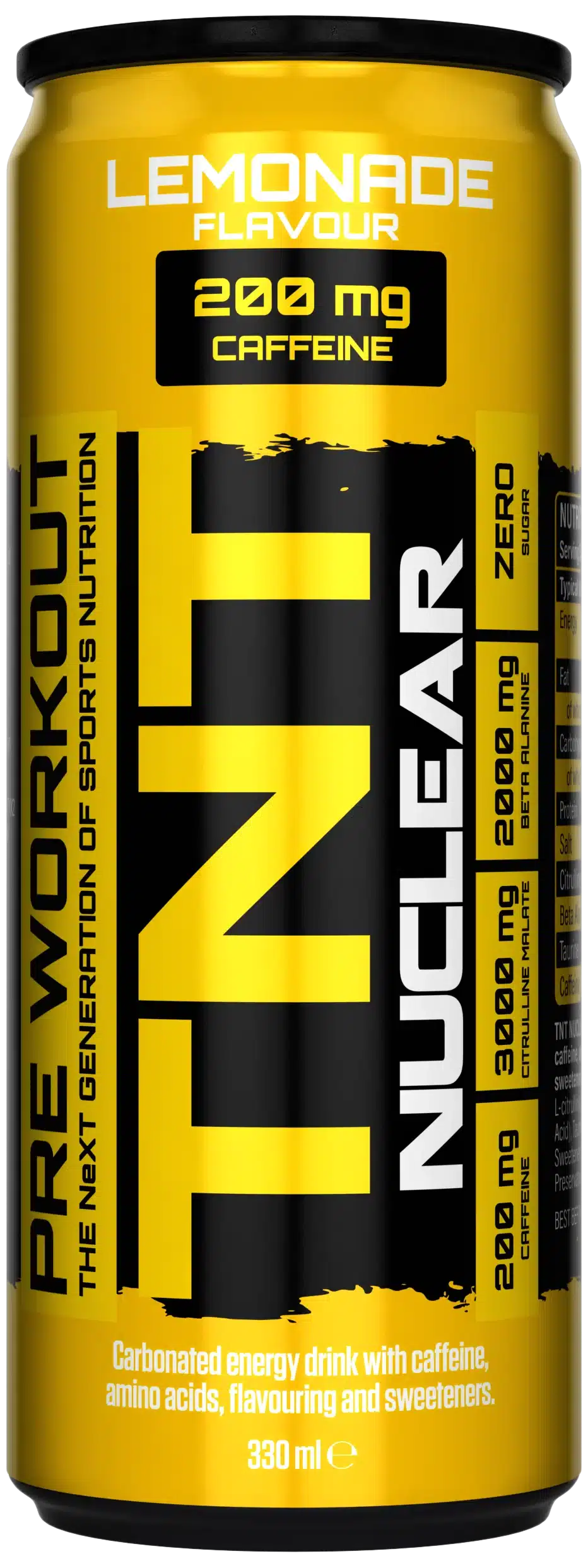 TNT Nuclear 330 ml de NXT Nutrition, c’est le pré-workout prêt à boire quand tu veux du concret, sans shaker, sans dosage, sans prise de tête. Tu ouvres la canette, tu bois, et tu vas t’entraîner avec une formule pensée pour l’essentiel : énergie, focus, endurance et pump. Le gros avantage, c’est la simplicité… et le fait que ça reste sans sucre, avec seulement 20 kcal par canette.